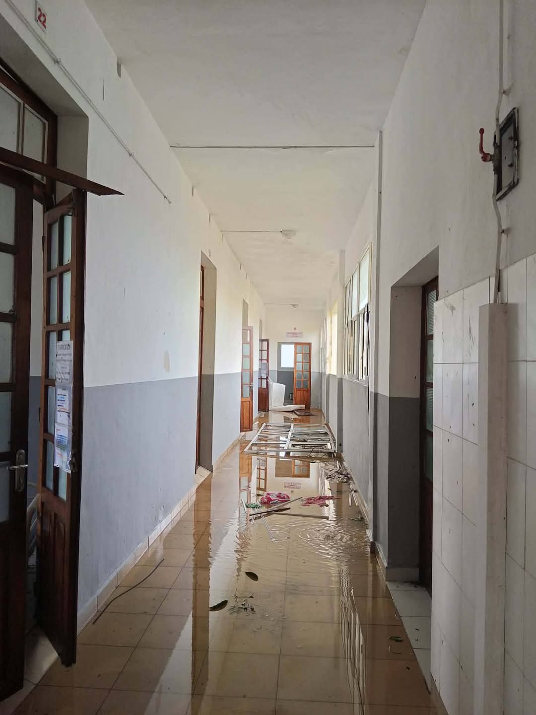 L’hôpital n’a pas été épargné et a subi beaucoup de dégâts. Le personnel soignant se retrouve donc en très grande difficulté, certains d’entre eux étant eux-mêmes sinistrés.